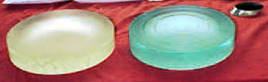 ich habe mich für ein kit (KITED600C für $120) bei newportglass entschieden. es besteht aus einem 6" (=150 mm) spiegel aus pyrex (temperaturmässig stabiler), ein werkzeug oder tool genannt, aus 6" normalen glas (im bild links), einem fertigen fangspiegel, pech, schleif und poliermittel. dazu habe ich ein buch mitbestellt : HOW TO MAKE A TELESCOPE by jean texereau. das buch ist unbedingt empfehlenswert, auch wenn es in englisch ist. ich habe es als grundlage gebraucht. auch viele andere finden das buch sehr gut, einige meinen, es sei DAS buch über teleskop herstellung.der spiegel hat eine vorgeformte brennweite von 1200 mm, was ein f=8 entspricht. eine kürzere brennweite bedeutet kleineres, handlicheres und besser transportierbares teleskop, aber auch weniger vergrösserungsmöglichkeit. aber mit 1200 mm sollte als anfänger ein gutes teleskop erstellt werden können.